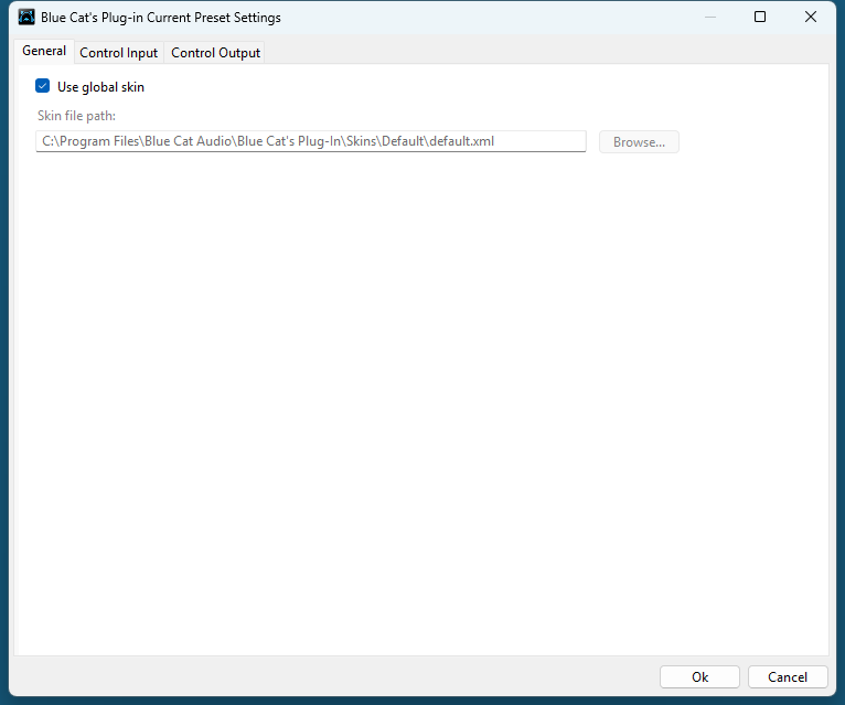 - Use Global Skin: use the global skin for the current preset/session (unloads any custom skin previously selected for the current preset).