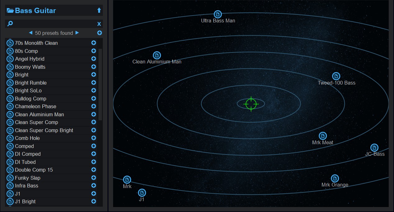 Just like for guitar amps, do not expect a comprehensive list of specific models here, but some keywords that may remind you of legendary gear that inspired these tones (sometimes it is only part of the stack, such as the preamp or the cab – see the mixed tones in next paragraph). The graphical elements used in the presets may also be an indication of the type of amp(s) that initially inspired them. But sometimes the inspiration can drive you far away from the source too :-).