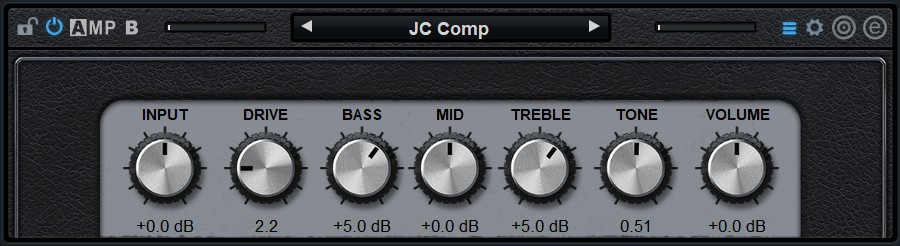 What would be the world of guitar amps without the Roland Jazz Chorus (JC 120 and other models)? A couple of presets with JC in their name are variations around this type of amp, usually very clean, straight and bright.