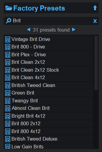 There are many other brands that have inspired presets for various parts of the amp models. You may find other keywords in their names, such as Yam for Yamaha, Pea for Peavey, Rand for Randall, Bug / Hubert for Bogner, Angel or Ange for ENGL, SLD for Soldano…
