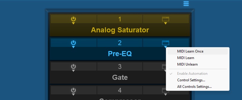 It took a bit of time to get there to ensure full compatibility with existing presets and sessions, but you can now automate or control via MIDI individual plug-ins bypass, and open/close each plug-in user interface via MIDI or automation.