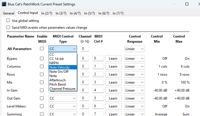 And talking about MIDI, there have been many improvements there too! It is now possible to control PatchWork’s parameters with many more types of MIDI events in addition to the traditional MIDI CC messages (14-bit CC, NRPN, various MIDI Note events, Aftertouch, Channel Pressure, Pitch Bend…).