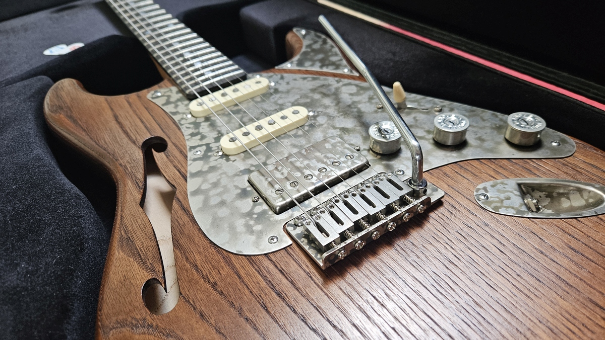 The “Lounge” series are semi-hollow, which makes the guitar quite light, despite the high density of the old chestnut wood.