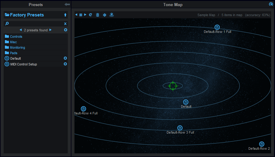 Remote Control also inlcudes a tone maps explorer, so that you can morph between multiple presets, and explore new tones for your MIDI controlled devices easily.