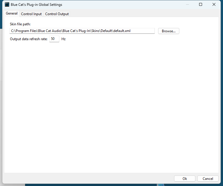 The output data refresh rate can also be customized for all instances of the plug-in. It controls the refresh rate of non-audio data produced by the plug-in (parameters, curves...). It also controls the refresh rate of output MIDI CC messages or output automation data. The higher the refresh rate, the better precision, but also the higher cpu usage (some host applications may also have trouble recording MIDI data at high refresh rates). The default value is 50 Hz.